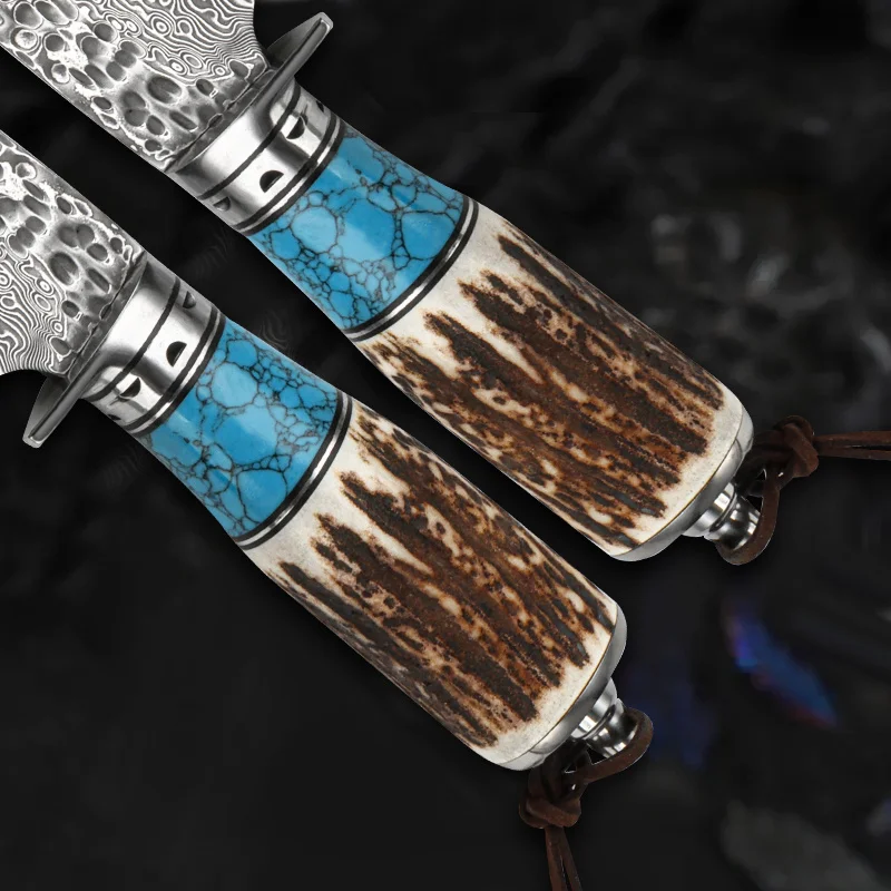 1 Piece Damascus Steel Outdoor Knife with Fixed Blade, Handmade Sheath and Gorgeous Design - Perfect for Camping, Survival and Rescue | Camping and Survival Equipment