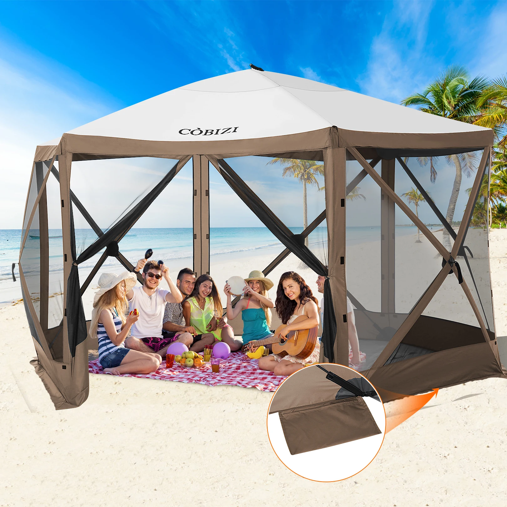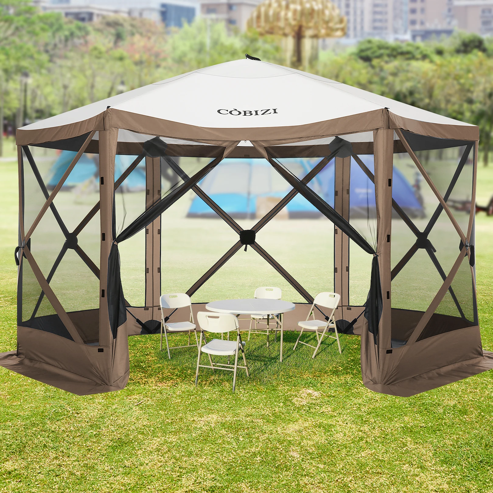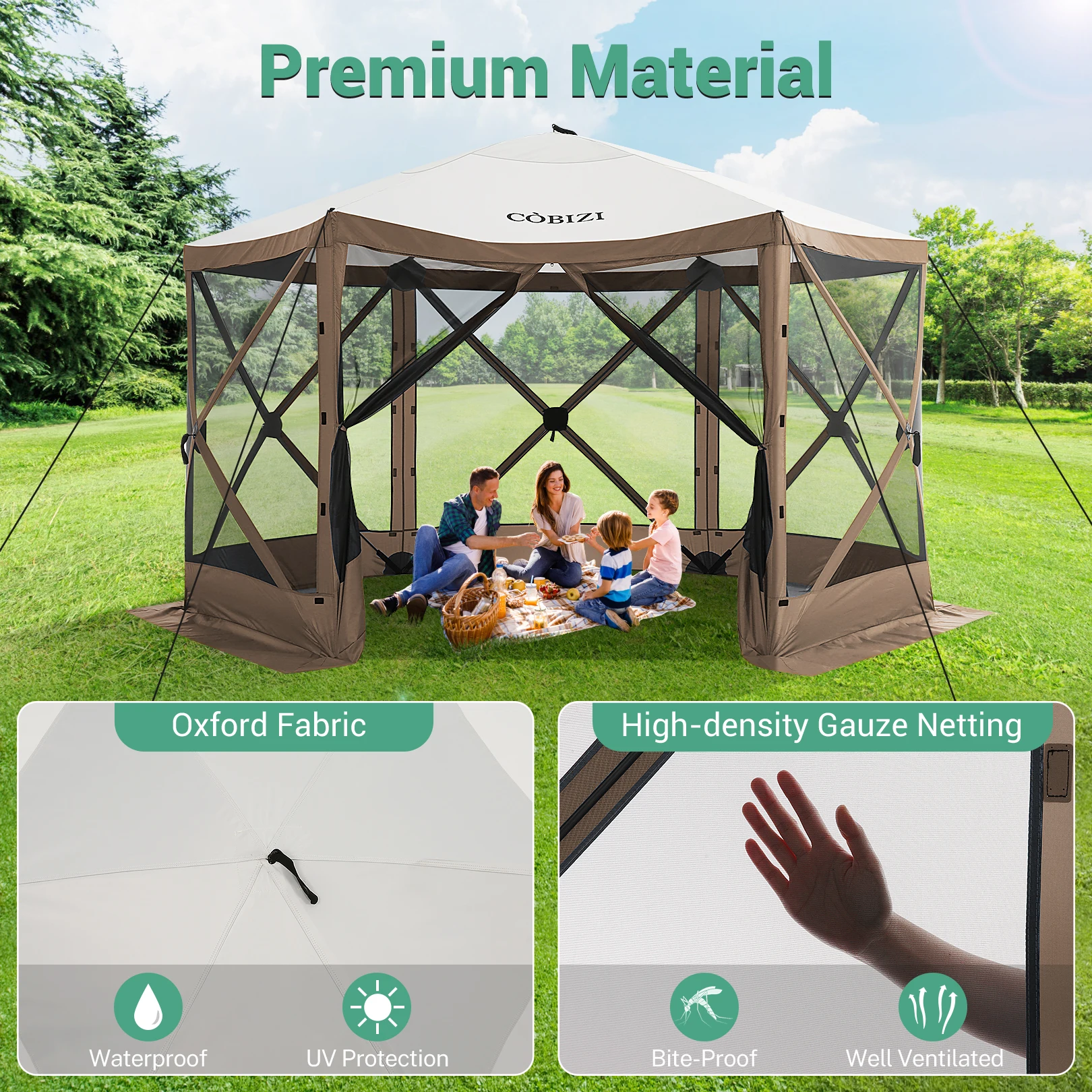 12x12ft Pop up Gazebo Screen House Tent with Mosquito Netting, 6 Sided Pop-up Canopy Shelter Tent Easy-Set Portable Gazebo