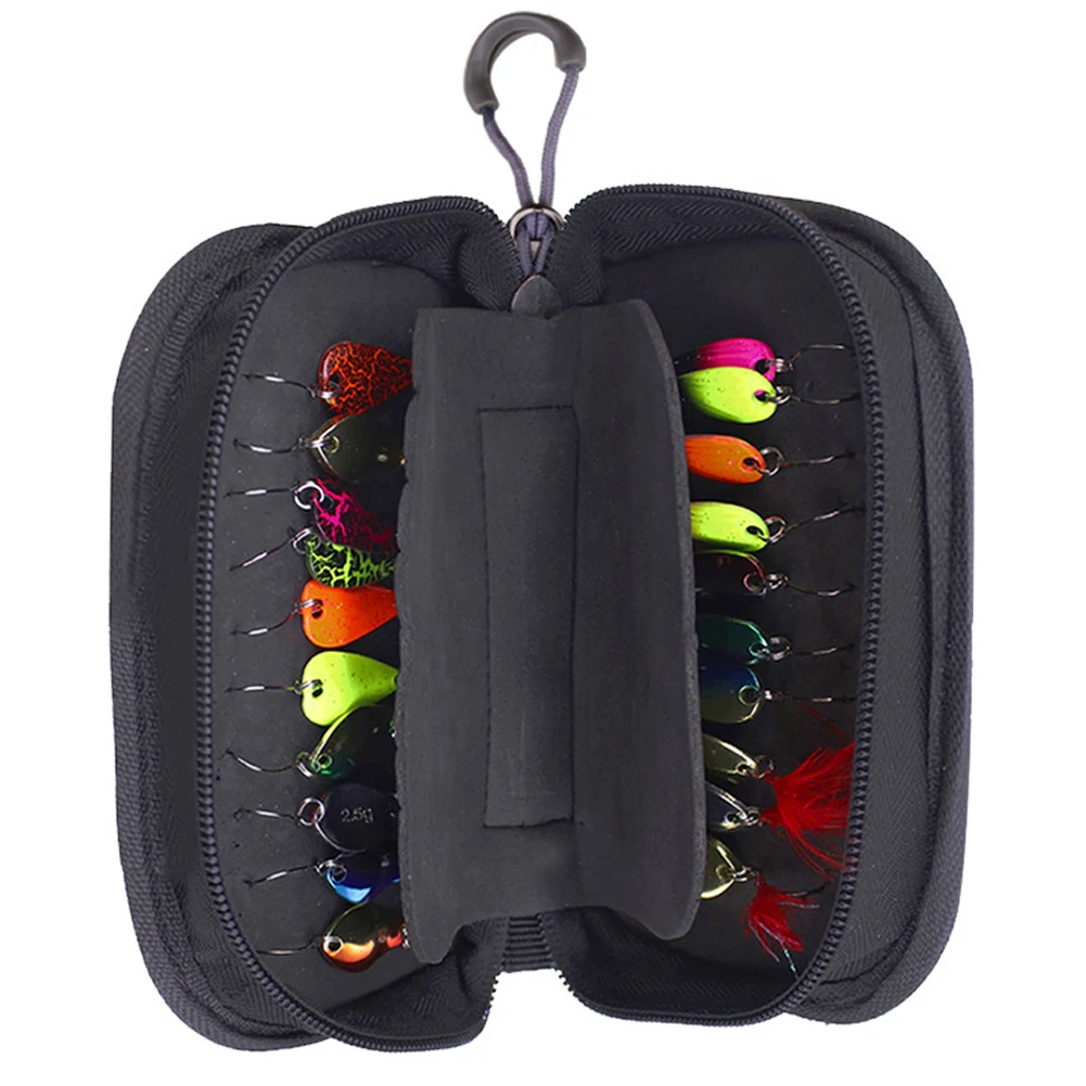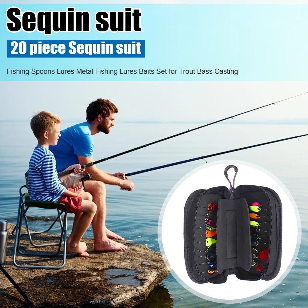 20pcs Fishing Lures Sequins Spoon Baits Set with EVA Foam Container Zipper Tackle Storage Bag Crankbaits Fishing Tackle Accessories