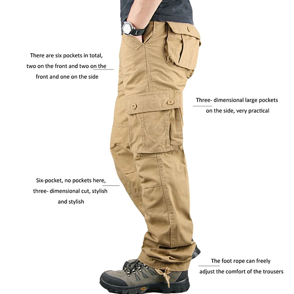 6 POCKETS US Mens Cargo Trousers 100% Cotton Work Trousers Tactical Combat Outdoor Pants
