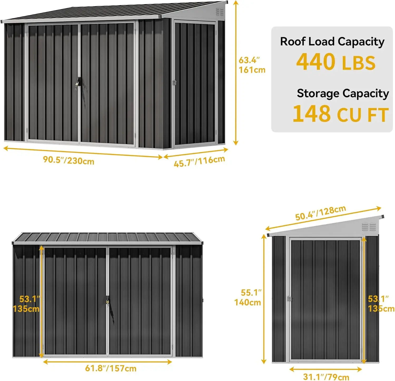 - Enhanced Materials: Made of galvanized steel, the outdoor storage unit resists corrosion and wind damage for lasting stability; Anti-collision rubber pads at each corner boost safety by minimizing impact in collisions