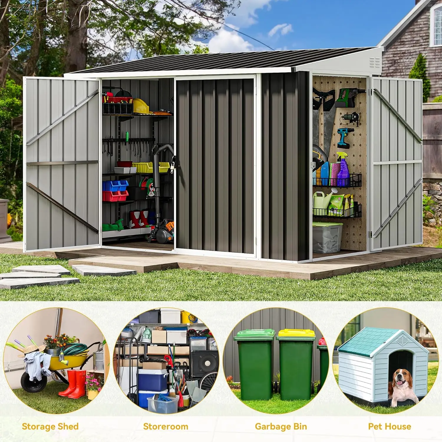 - Dual-Door Access & Security: With a double-door layout, this outdoor shed provides easy access and ample space for large tools; The robust locking mechanism ensures items safety, offering peace of mind against damage