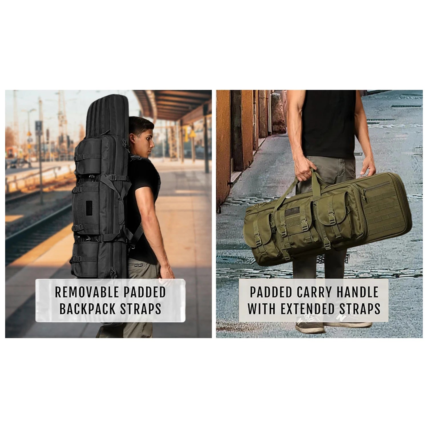 Classic Tactical Double Long Gun Pack Pistol Transport Case with Backpack Strap Lockable Compartment for Outdoor Hunting