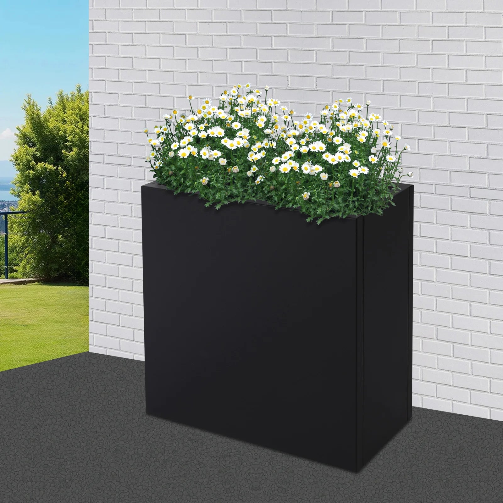 This planter box is made of high-class material, with a simple and elegant appearance, suitable for various indoor decoration styles. The black-colored design is not only fashionable but also blends well into various home environments. The size of the box is moderate, suitable for placing various green plants and artificial plants. Whether placed in the living room, study, or office, this product can add a natural touch of beauty to your space and enhance the overall atmosphere.