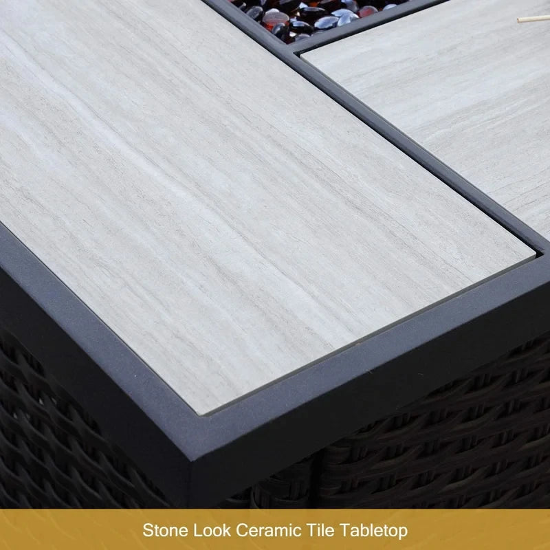 Outdoor 43-Inch Safety Approved Gas Fire Pit Table Rectangle Propane Fire Pit with Ceramic Tile Top and Wicker Base
