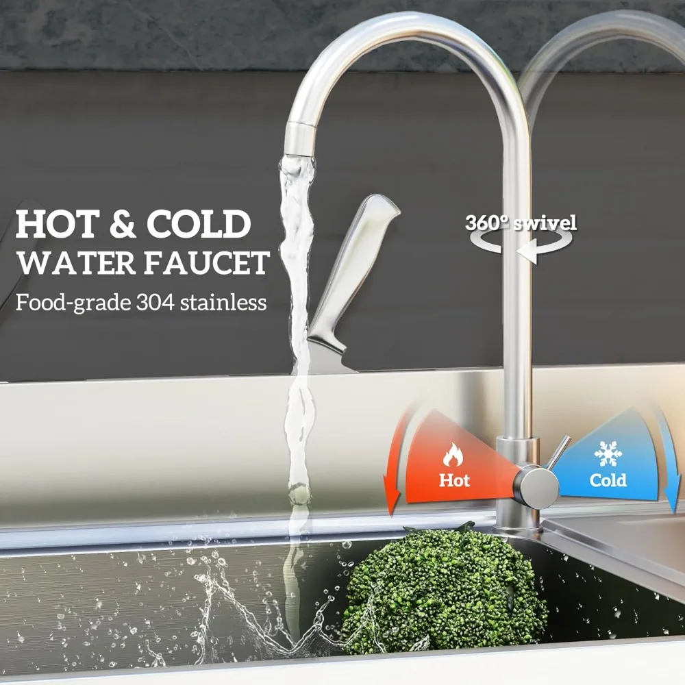 - Portable Sink with Hot Water: Have a fully functional outdoor kitchen; the food-grade 304 stainless steel faucet has the hookups needed for both hot and cold water. Hook up to a standard American 1/2inch faucet.